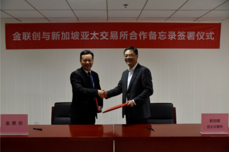 2019年11月6日,新加坡亚太交易所(简称:APEX)与金联创网络科技有限公司(简称:金联创)签署合作备忘录。备忘录由新加坡亚太交易所首席执行官朱玉辰先生和金联创董事长黄海新先生共同签署。